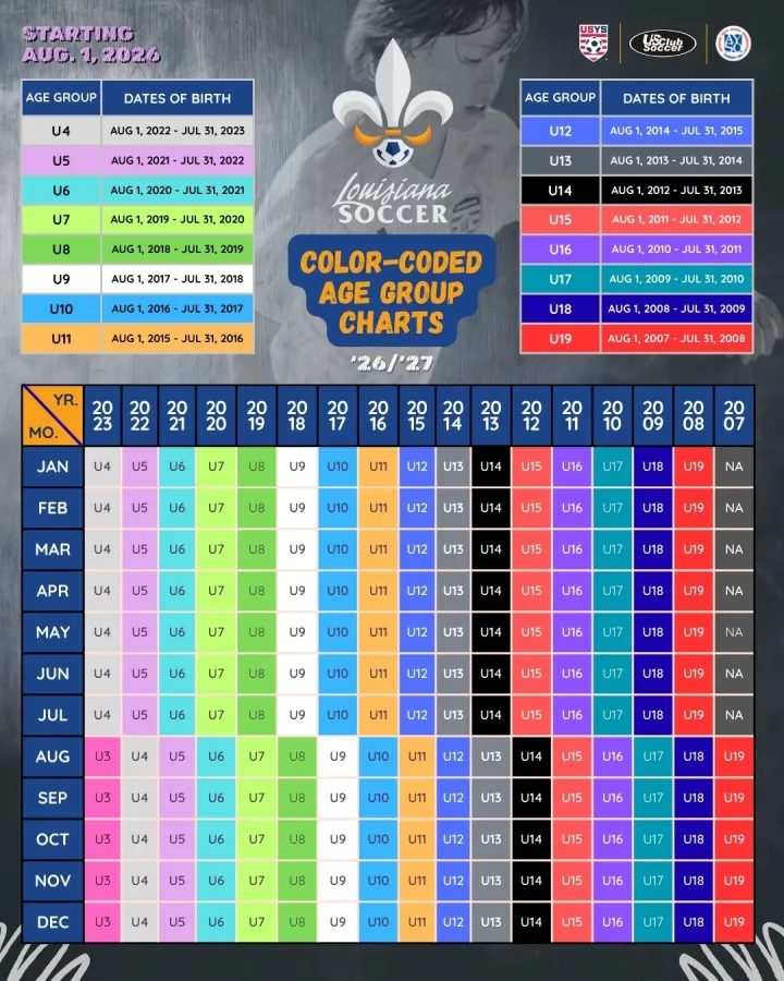 The official 2026–27 Age Group Matrix has been released following the national transition to school-year age group formation. Beginning Aug. 1, 2026, age groups will run Aug. 1 – July 31.