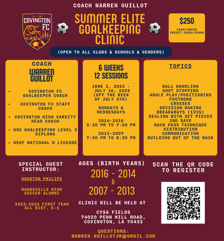 Official website of Covington Youth Soccer Association located in Covington, LA. Click for more information.
